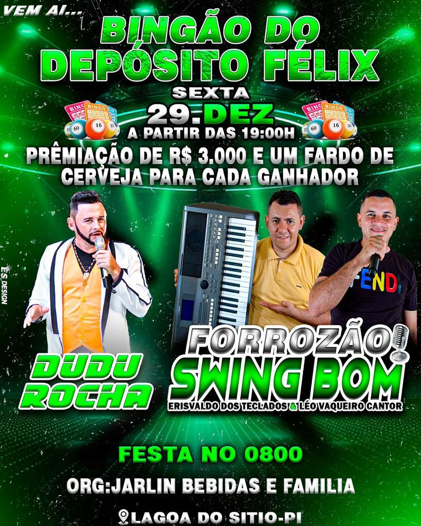 Bingão do Depósito Félix em Lagoa do Sítio, vai ter Dudu Rocha no 0800 nesta sexta(29)