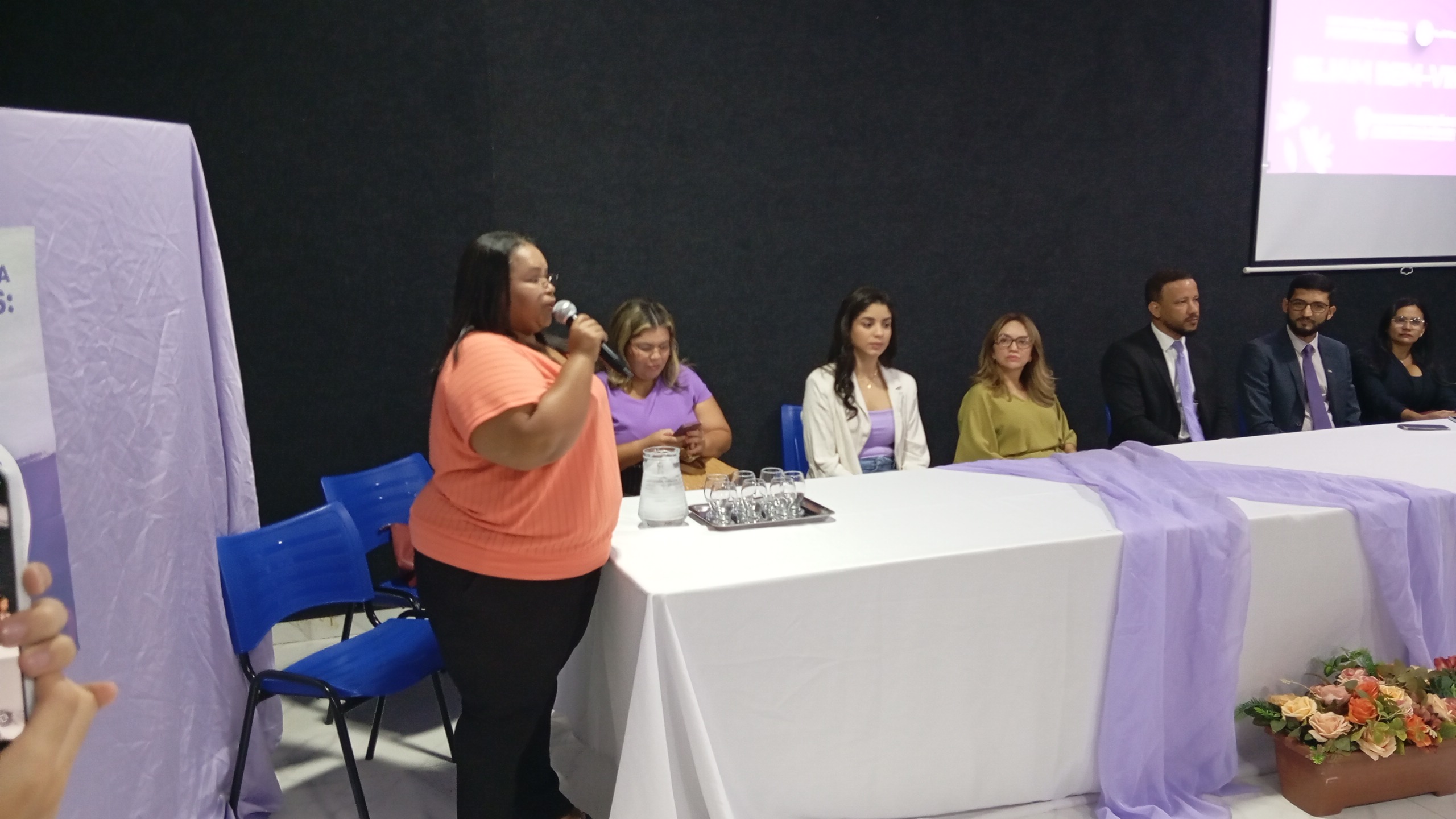 A Promotora de Justiça Dra. Aragão, iniciou, fazendo um relato sobre como as mulheres devem se defender diante dos abusos de seus companheiros e enfatizou a chamada de como denunciar.