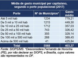 Saiba o quanto as prefeituras investiram em saúde por habitante