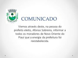 Prefeito Afonso Sobreira emite nota afirmando que “Energia Elétrica de Novo Oriente já foi reestabelecidas “,veja;
