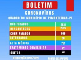COVID-19: Pimenteiras tem mais 14 casos confirmados e total passa de 800