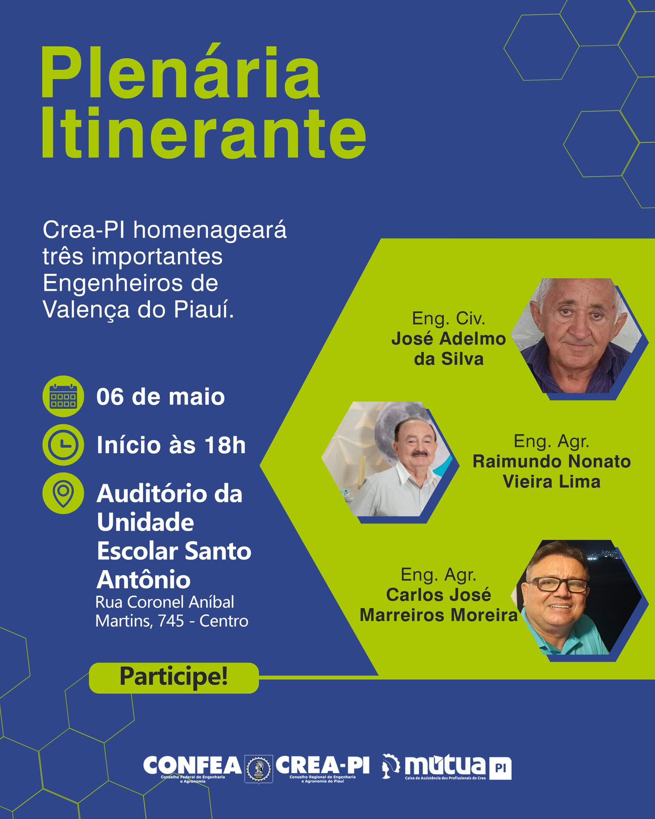EnOs  Engenheiros José Adelino de Sousa,Raimundo Nonato  Viera Lima e Carlos José Marreiros Moreira decorrerá sobre vários temas. Participe!