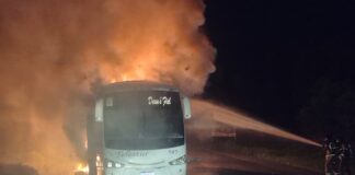 Ônibus de turismo pega fogo em Floriano; Corpo de Bombeiros é...