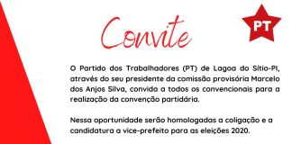 PT de Lagoa do Sitio convoca membros e filiados para convenção...