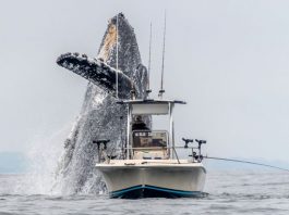 VÍDEO – BALEIA GIGANTE DÁ SALTO ESPETACULAR E QUASE AFUNDA BARCO