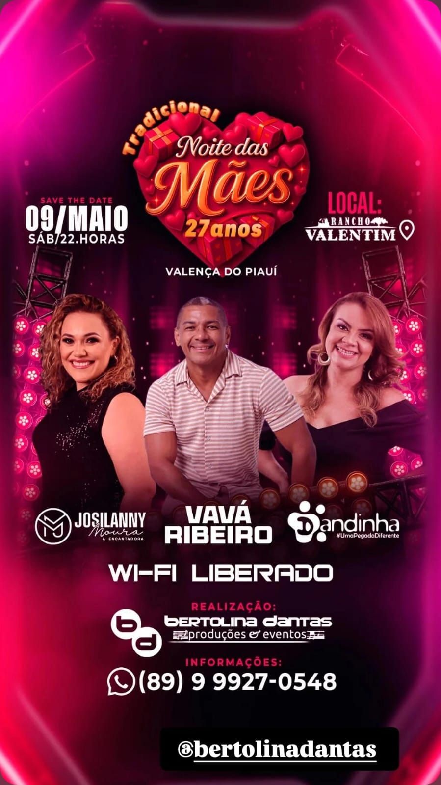 Bertolina Dantas e Cia, preparou o melhor para festejar a Noite das Mães.