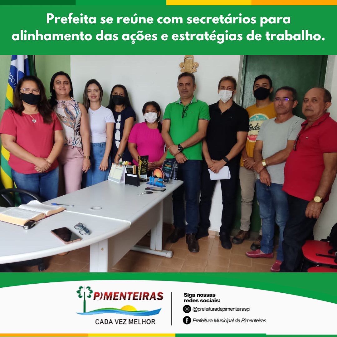 A prefeita explica que reuniões continuadas com o secretariado contribuem para um melhor desempenho da gestão. Ainda falou falou do sentimento e da alegria de doar quatro anos de sua vida para servir como prefeita à população pimenteirense. E pediu o empenho de todos na otimização do atendimento, melhorando cada vez mais o atendimento às pessoas.