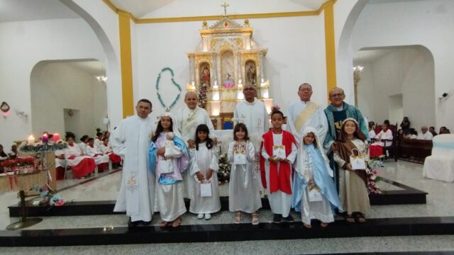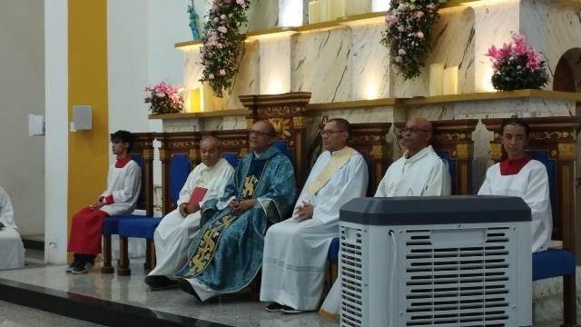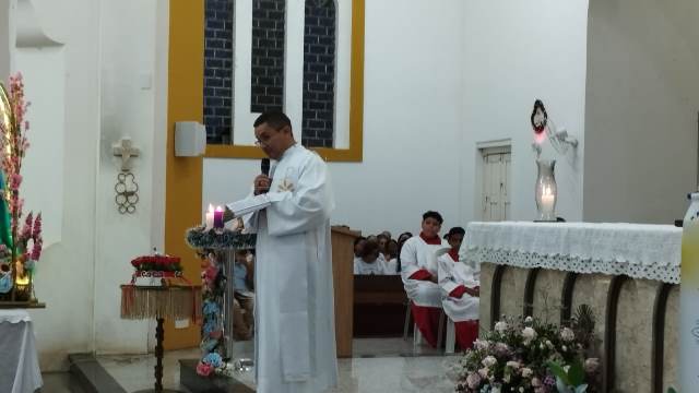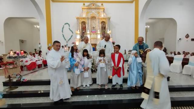 A Santa Missa foi celebrada pelos padres, Pároco Wanderley Moraes, Pe. Francimilton Gonçalves e Pe. Antonio Carlos, com a presença dos diáconos Rogério e Balbino Miranda e demais auxiliares de altar. Em sua homilia, o padre Francimilton Gonçalves destacou a importância da fé e da comunhão, convidando a comunidade a participar e a levar suas famílias para a celebração.