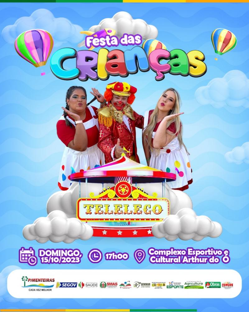 A Prefeitura Municipal de Pimenteiras (PI) tem o prazer de convidar todos os pais e crianças do município para participarem de uma tarde repleta de diversão na tão aguardada Festa das Crianças. O evento promete encantar a todos com uma programação especial e uma apresentação imperdível do palhaço Teleleco.