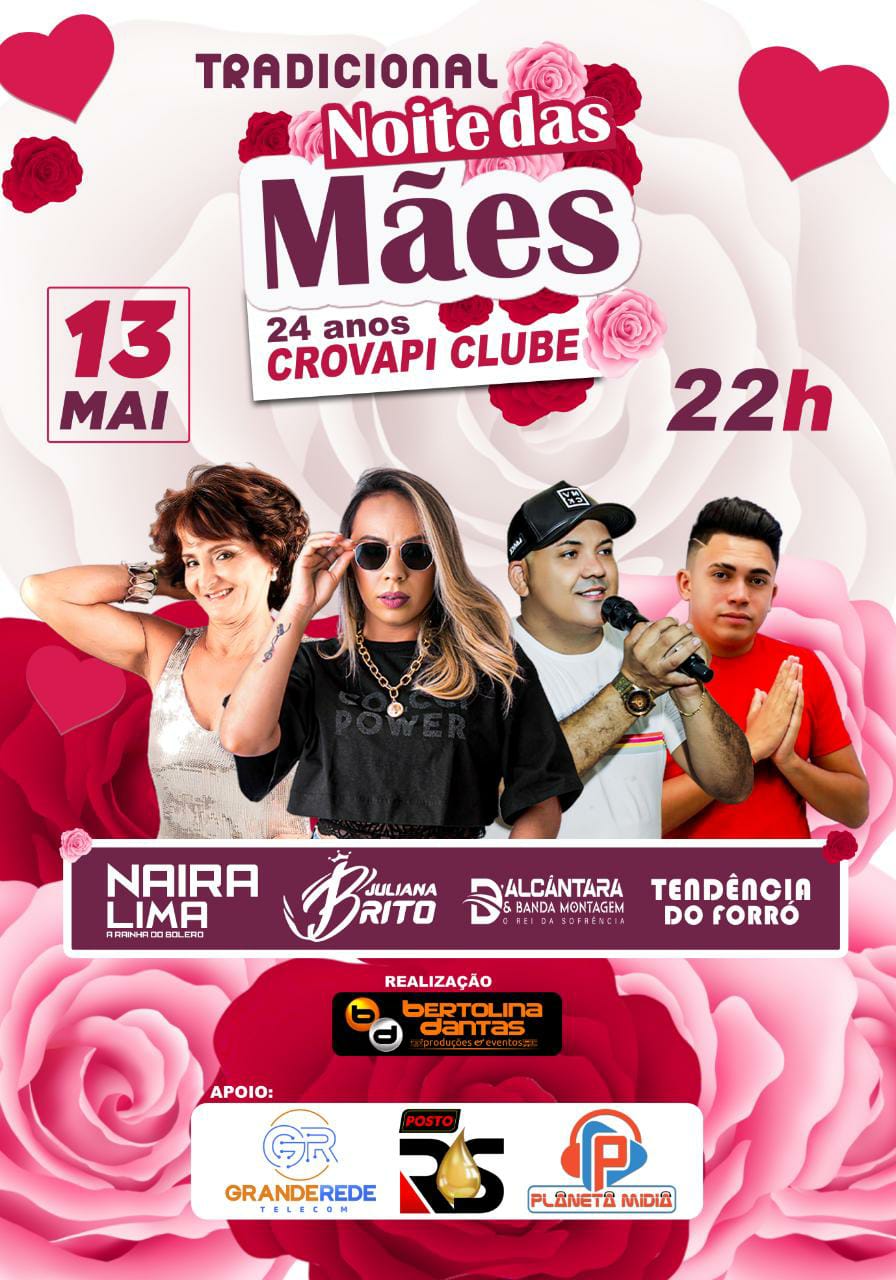 Tradicional noite das mães será dia 13 no Crovapi Clube, vejam as atrações